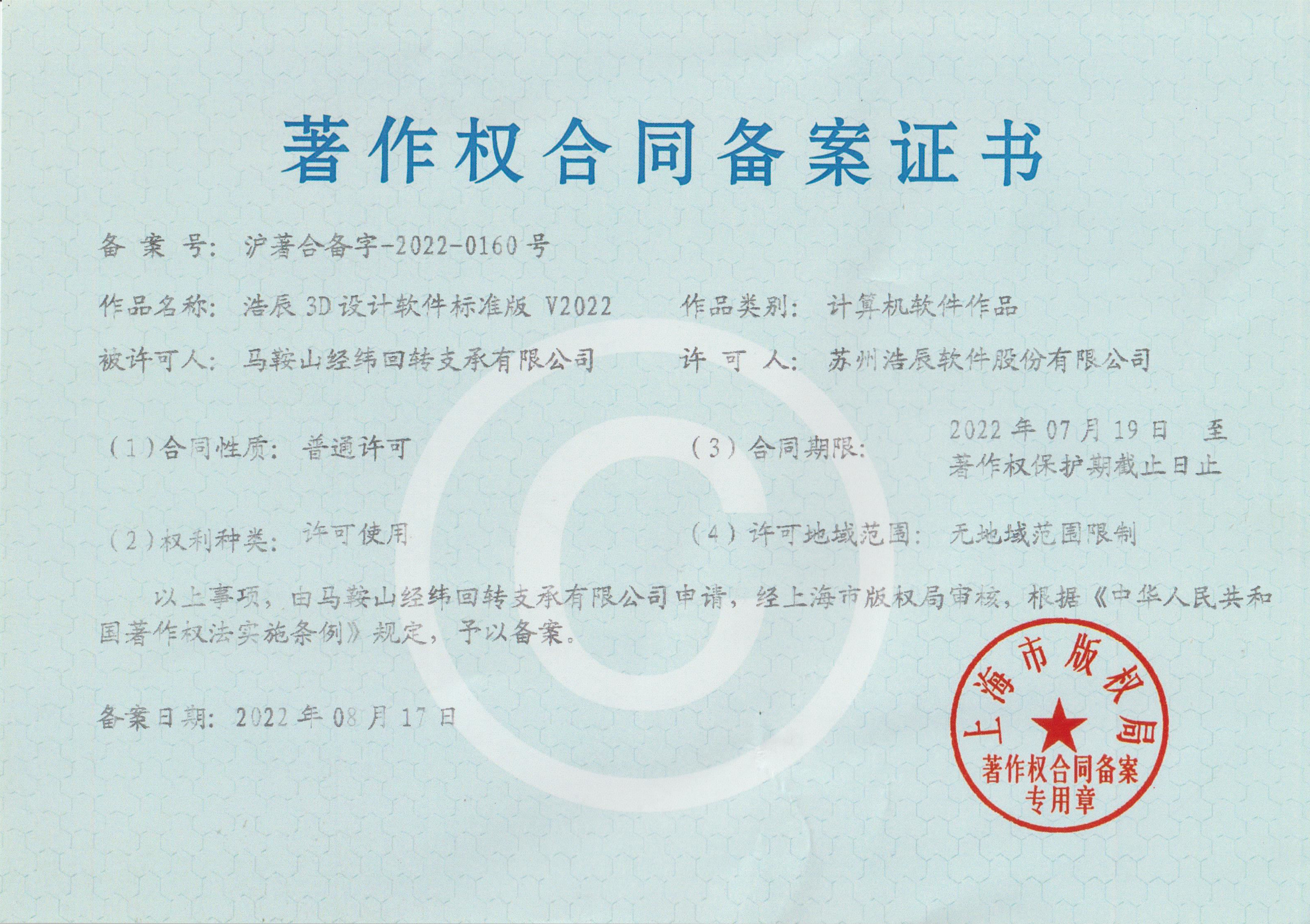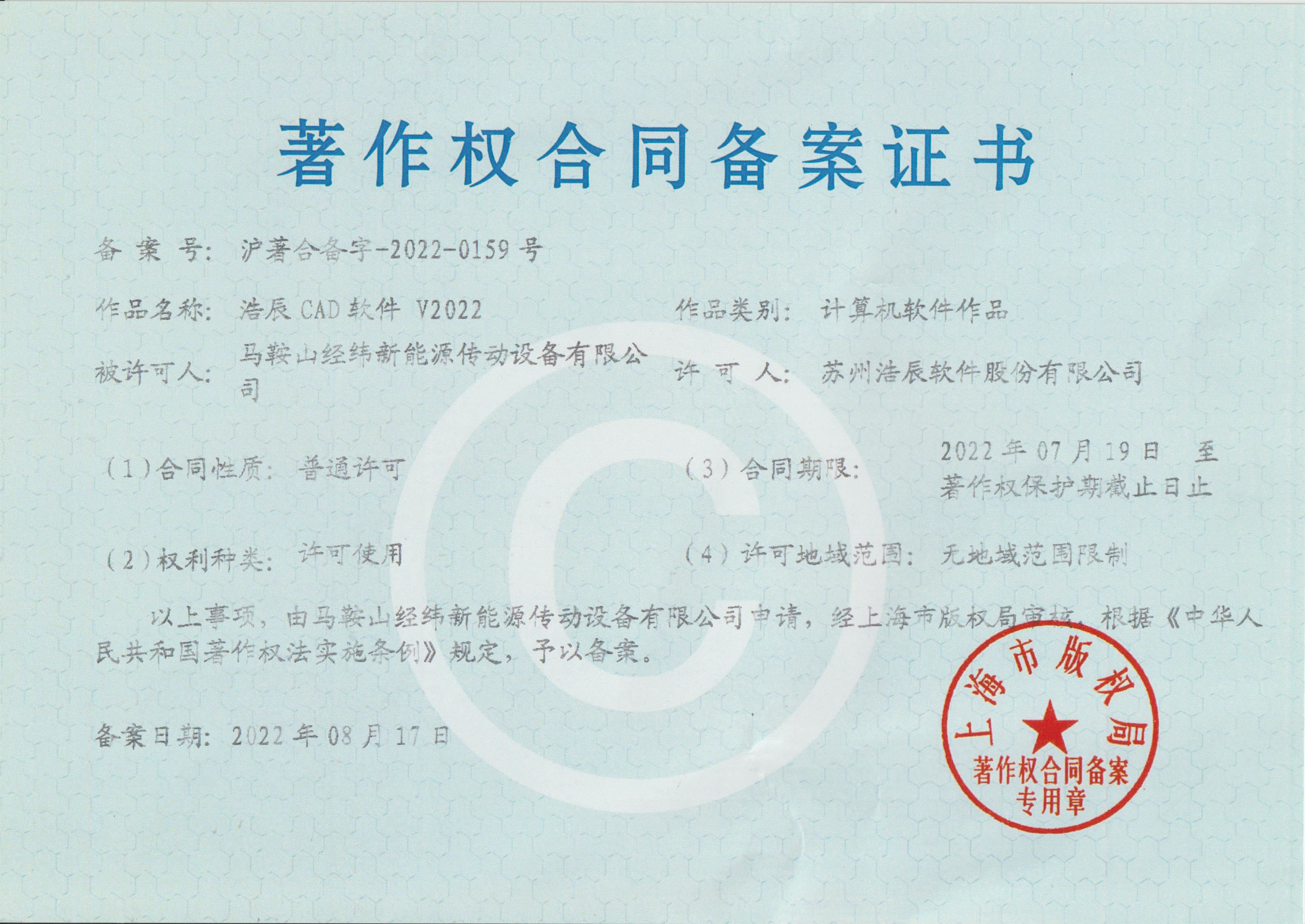 浩辰CAD軟件V2022著作權(quán)合同備案證書