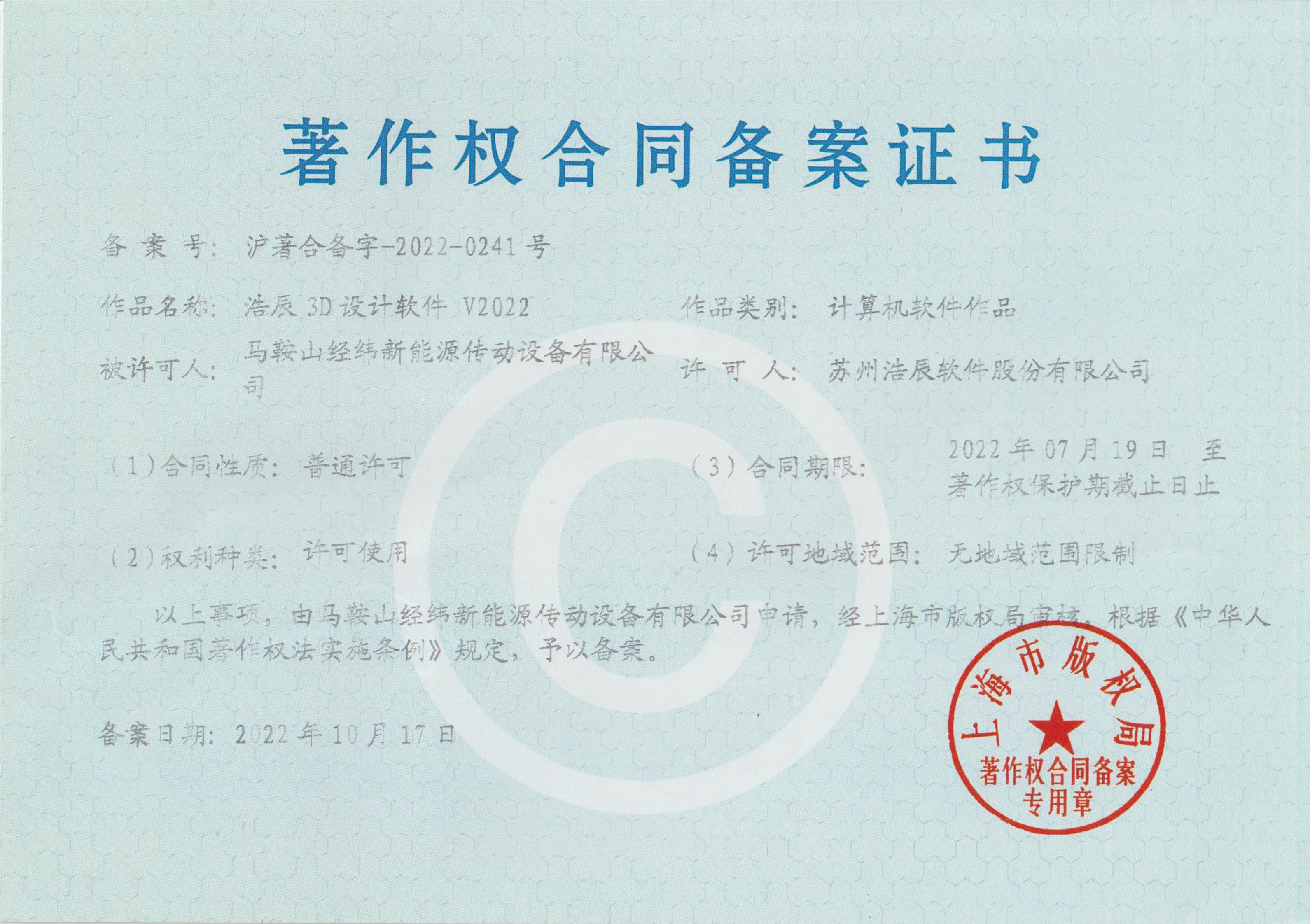 浩辰3D設(shè)計軟件V2022著作權(quán)合同備案證書
